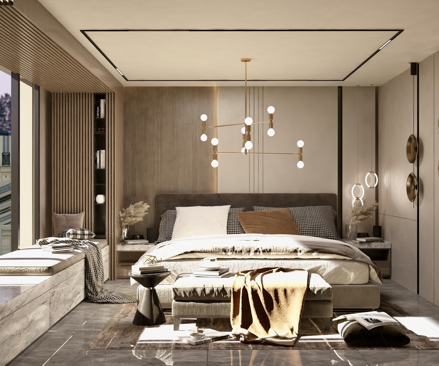 İskandinav tarzı, minimalist, rahatlatıcı ve doğal bir atmosfer yaratmayı amaçlayan bir tasarım yaklaşımıdır. Yatak odası tasarımında Iskandinav tarzını kullanarak sakin ve huzurlu bir mekanoluşturulmuştur. Beyaz, gri, bej gibi nötr renkler, mekana ferahlık ve dinginlik katmıştır.Bol miktarda doğal ışık, Iskandinav tarzında önemlidir. Büyük pencereler düzenlemeleriyle daha fazla ışık alması sağlandı. Doğal ahşap dokunuşları, Iskandinav tasarımının vazgeçilmezlerindendir. Ahşap yatak başlık detayı, komodin veya raf gibi mobilyalar kullanılmıştır.Fonksiyonelliği ön planda tutan mobilyalar tercih edilmiştir. Müşterimizin pencere kenarında rahatça dinlenip, kitap okuyabileceği şık bir alan tasarlanmıştır. Az ama etkileyici dekorasyon öğeleri kullanarak minimal ve sade bir görünüm elde edildi. Basit, modern sıva altı lineer led aydınlatma ve doğal aydınlatma unsurları kullanarak odanın aydınlatmasını optimize edilmiştir.
